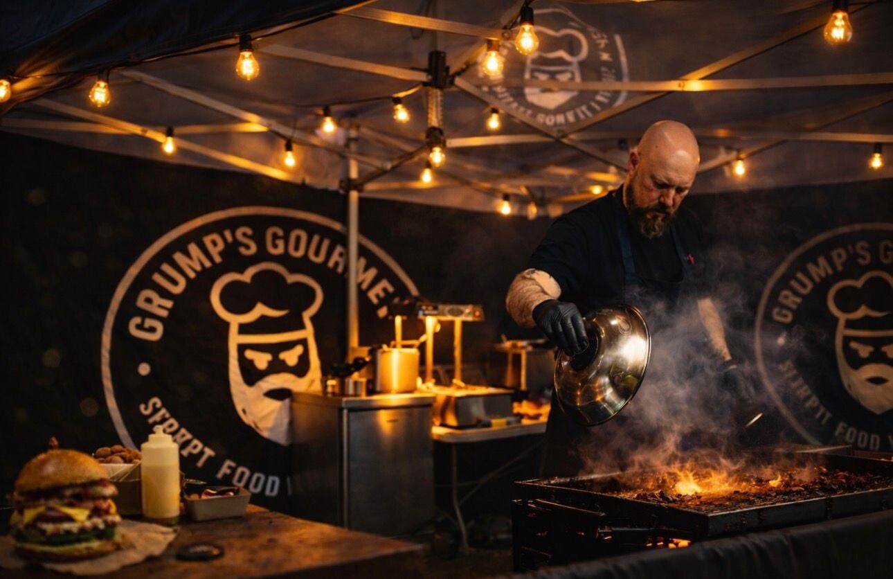 At Grumps Gourmet, we combine professional chef experience with proper street food attitude. Every dish is crafted around our signature double smash patties, cooked for that perfect crispy edge and packed with flavour. We take classic comfort food and push it further – richer, bolder, and unapologetically indulgent. Plus, with options like 'Build Your Own Beast,' you have the freedom to create something completely unique. No shortcuts, no bland options, and no playing it safe – just food done properly with plenty of attitude.