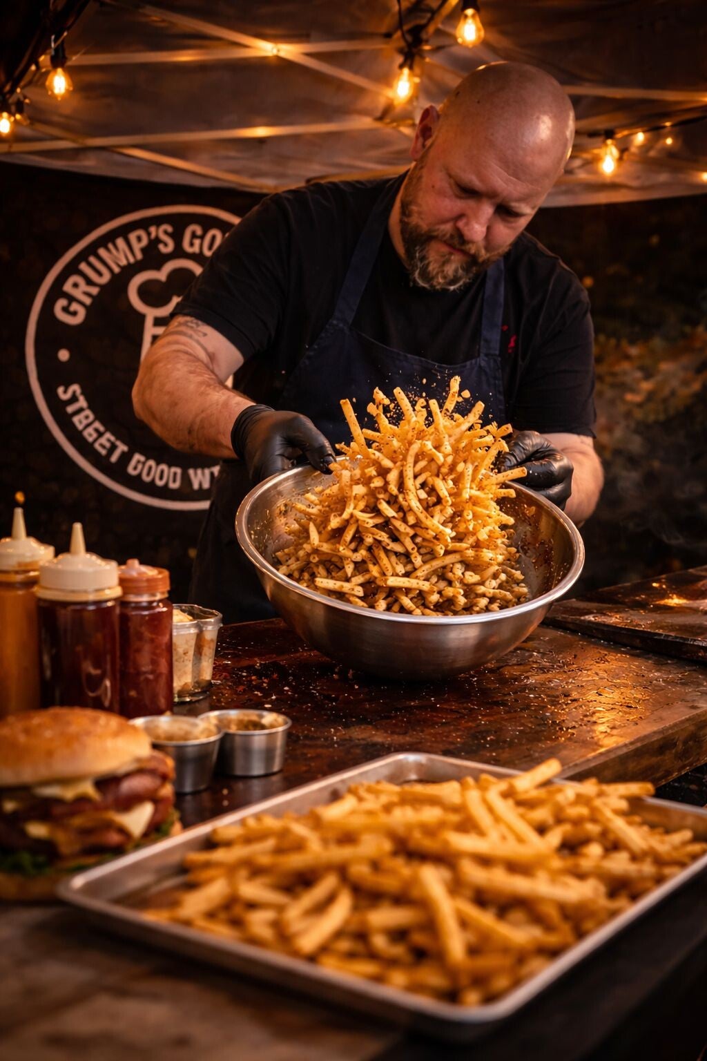 Grumps Gourmet began with a straightforward vision: to bring proper, chef-level cooking to the streets without compromising on quality. After over 18 years as a professional chef, our founder, Russ, wanted to cut through the bland, overpriced, and forgettable food often found at events. He’s a man of few words, but when it comes to food, only perfection will do.